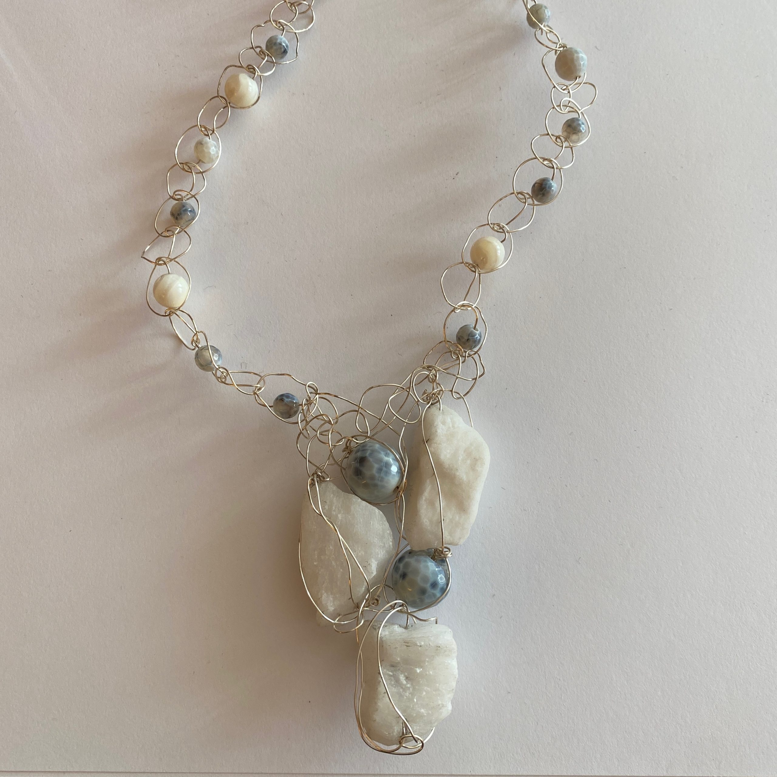 18″ stone and silver crochet chain including 3″ stone pendant