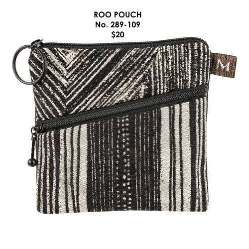 Handmade in Colorado, Maruca is known for its quality and fabrics. Roo pouch is 5X5 “with water resistent lining and brass finish key chain. Good as a wallet, for jewelry, medications and secret stuff.